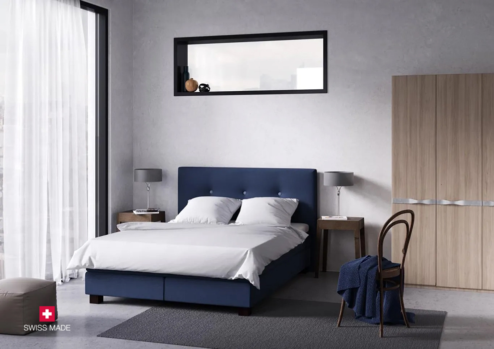 Um Ihr Polsterbett optisch in einen Hingucker zu verwandeln, bieten wir Ihnen bei Superba Atelier Suisse eine umfangreiche Stoffkollektion aus 76 Premiumtextilien an. Ganz einfach können Sie Ihrem Bett eine persönliche Note verleihen und es nach Belieben an Ihre vorhandene Schlafzimmereinrichtung anpassen. Satte, dunkle Farbtöne unterstreichen beispielsweise die Noblesse des Designs und bringen eine unwiderstehliche Ruhe in Ihr Schlafzimmer. Heben Sie das raffinierte Kopfteil dieses Betts beispielsweise mit einem royalen Blau hervor und geniessen Sie königliche Träume. Oder setzen Sie auf die Kombination mit hellen Tönen wie Beige, um die elegante Wirkung des Polsterbettes Plain Button zu unterstreichen.