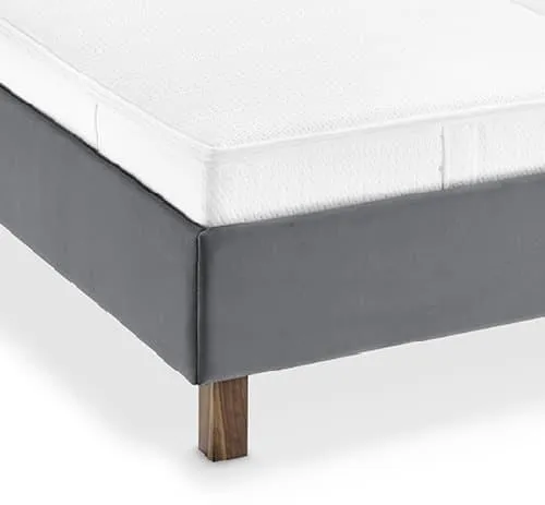 STOFF Fusion Beige BOX Fix, 25 cm (durchgehende Seitenkante) FUß Metallfuß eckig Chrom, 10 cm HÖHE KOPFSTÜCK, 102 cm MATRATZE Lago, 19 cm (zweiteilig) TOPPER Noblesse Natural, 10 cm (einteilig)