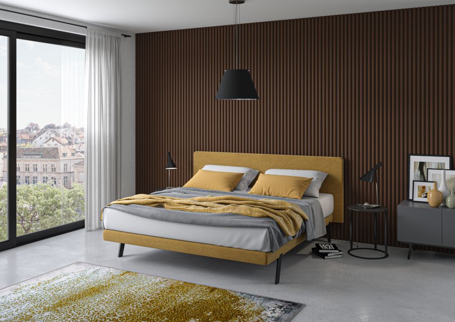 Das Premium-Bett Esprit ist mit einem schwebenden Kopfteil ausgestattet, das zur edlen Optik des Bettes beiträgt. Mit 6 cm Tiefe ist das Kopfteil zudem wunderbar schmal – ideal für alle, die ein elegantes Design im Schlafzimmer bevorzugen. Durch das überstehende Kopfteil entsteht zugleich ein raffinierter Blickfang. Passend zum Bettrahmen wird das Kopfstück in einen Dekorstoff Ihrer Wahl gehüllt.